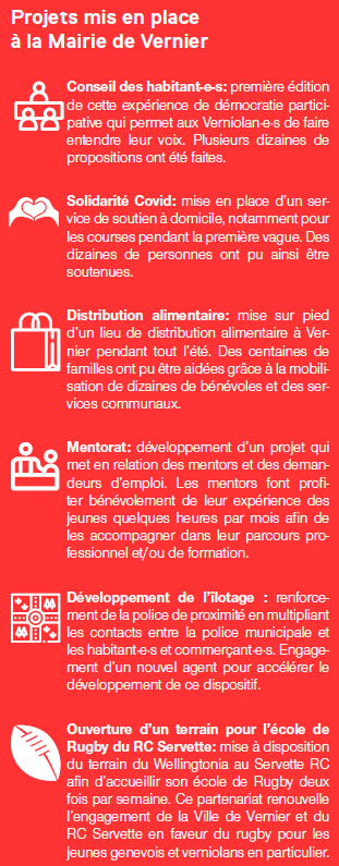 À Vernier, nous proposons ainsi un vrai pro-jet politique commun, qui est ensuite décliné par chaque institution selon ses spécificités propres. Régulièrement, le partage de leurs expériences dans un processus bottom-up (qui part donc du terrain) aboutit à une politique de la petite enfance qui est cohérente et active. J’insiste en passant sur le soulagement que représente pour ces structures le fait d’être déchargées de leurs problèmes administratifs et d’une bonne partie de la gestion administrative des ressources humaines !
